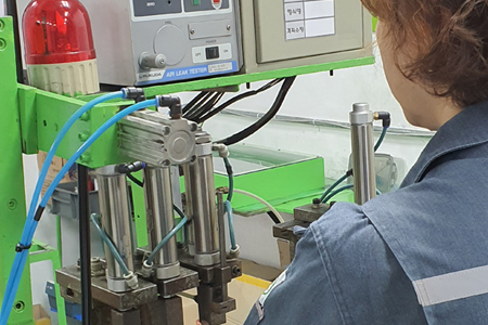 우리의 품질은 고객의 생명 가스기기 관련 가스유도관(MANIFOLD A’LY)의 누설은 사람의 생명과도 직결 되어있는 중요한 보안 부품입니다. 가스유도관(MANIFOLD A’LY)의 기밀성 확보, 고객이 요구하는 최상의 품질확보를 위해 자사기술개발을 통하여 자동화 가공설비 및 정밀한 누설검사 설비를 제작하였으며 끊임없이 연구개발을 진행하고 있습니다. 제품을 출하하기 전 완성된 제품의 세세한 부분까지 정밀하게 측정하여 고객에게 확실한 품질과 신뢰를 드릴 수 있도록 부품 하나하나에 정성과 성의를 다하여 정밀한 공정과 검사, 공정개선, 기술개발에 노력하고 있습니다. 가스유도관(MANIFOLD A’LY) 주요공정